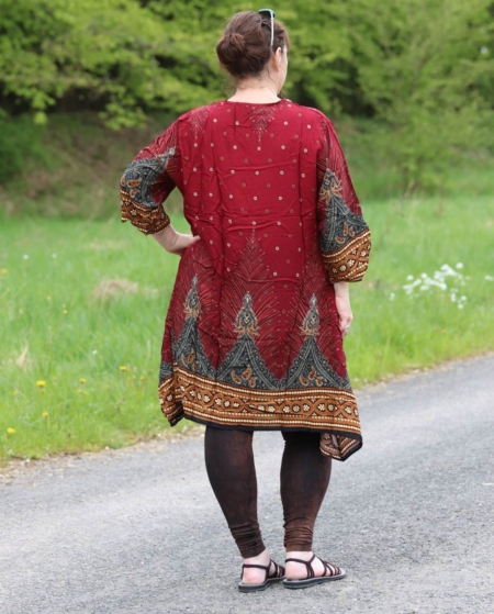 Plus Size Tunika ORIENTAL mit Pfauenfedern | Legeres Damenshirt XXL | Bordeaux