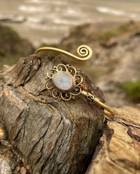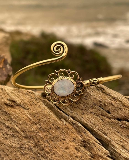 Messing Armreif mit MONDSTEIN | Gold