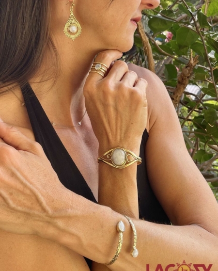 Armreif SELENI mit großem Mondstein | Gold