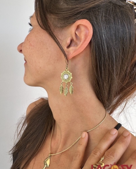 Traumfänger Ohrringe AYA mit MONDSTEIN | Gold