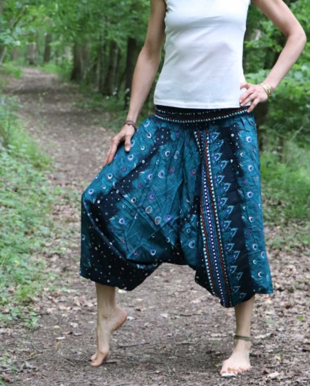 Haremshose Hosenkleid mit Pfauenmuster Petrol