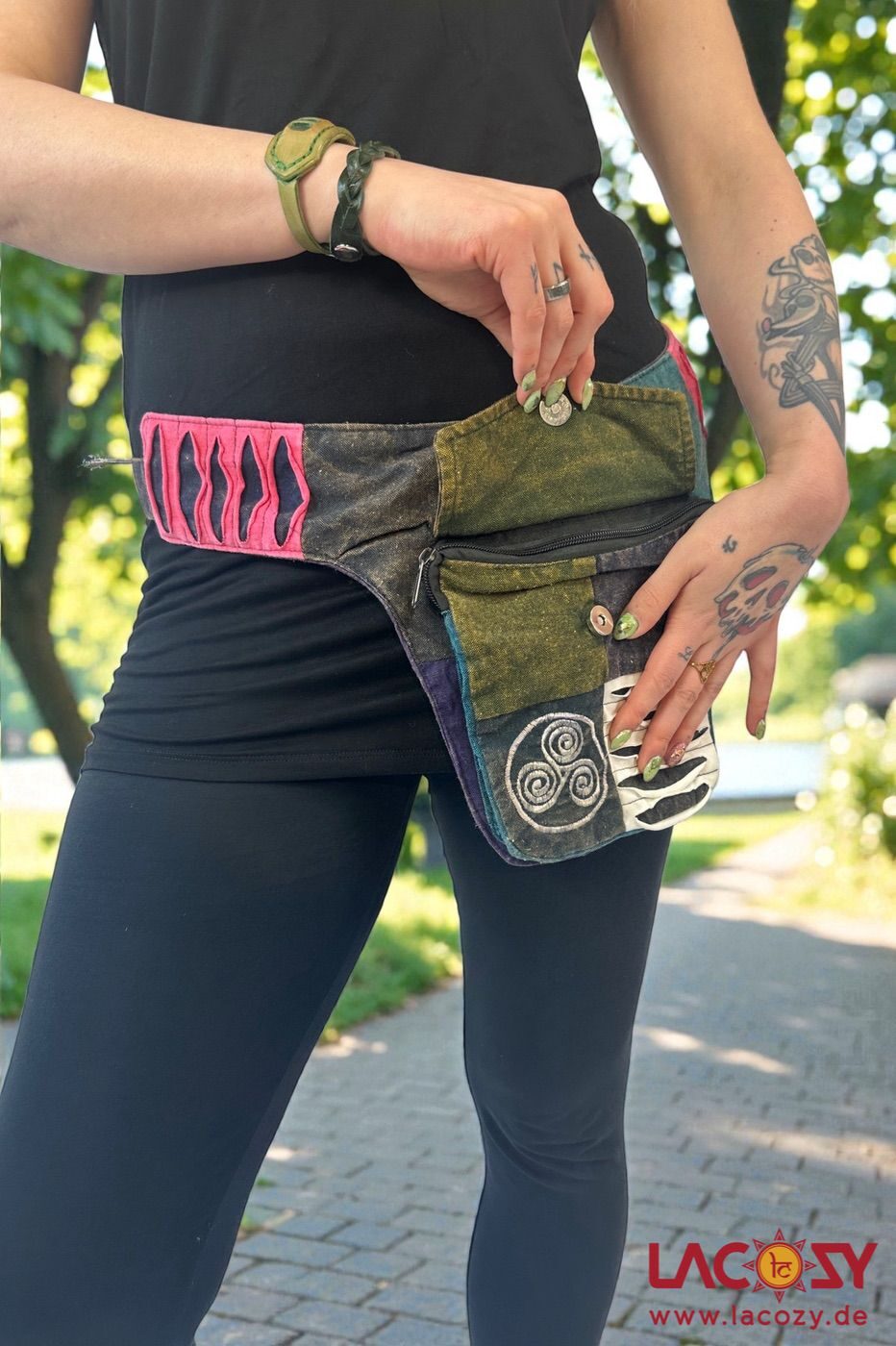 Die praktische Patchwork Bauchtasche im Hippie-Stil ist ein echtes Statement für alle, die Farbe lieben und ihren eigenen Stil leben.