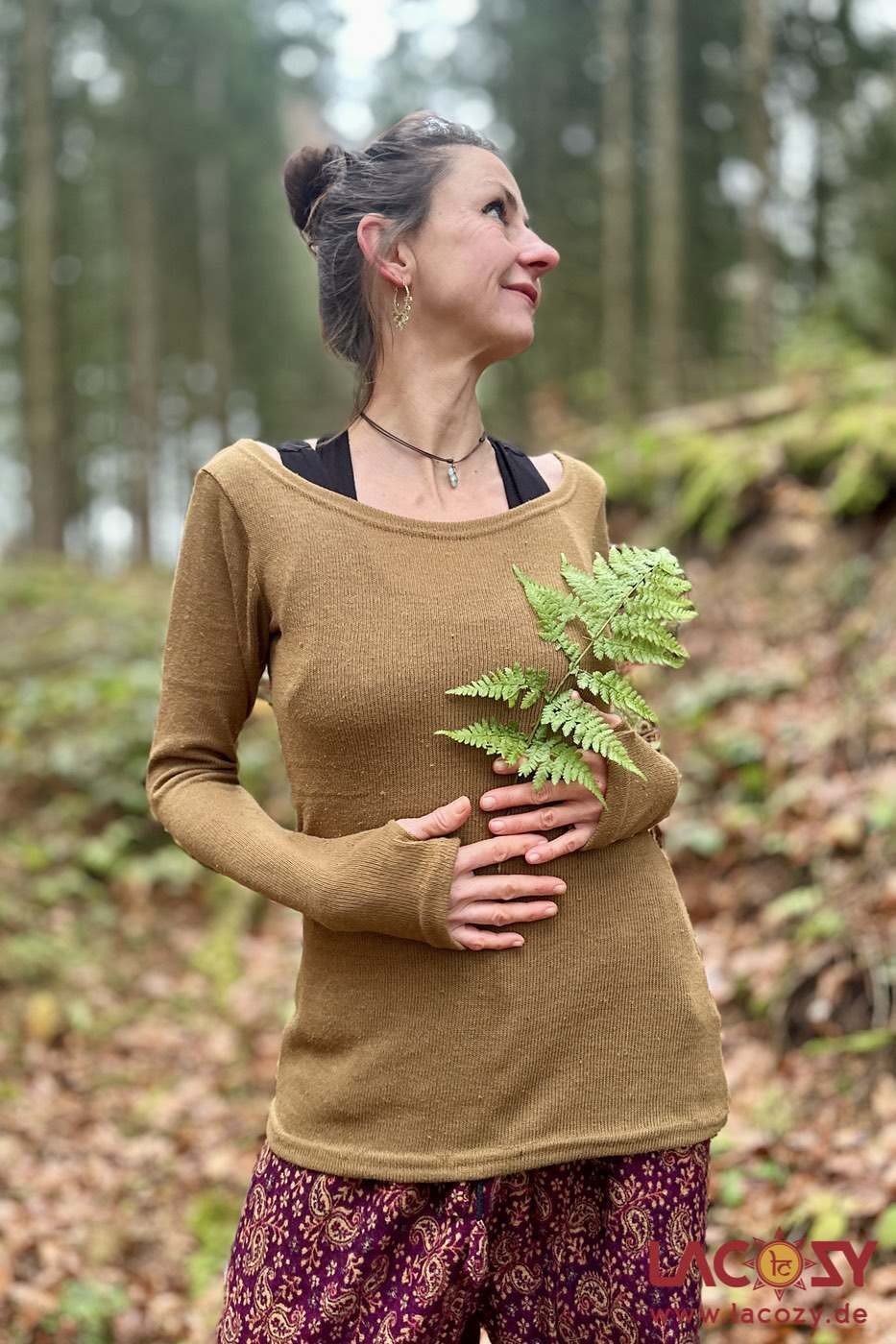 Der Pulli TERRA steht für Erdung, Wärme und Natürlichkeit: Ein schlichter, stilvoller Boho Pullover, der dich durch den Alltag begleitet. Seine natürliche Farbe in erdigem Senfgelb, der weite Rundhalsausschnitt und die praktischen Daumenlöcher verleihen ihm eine feminine, zeitlose Eleganz – schlicht im Design, aber voller Ausdruck.