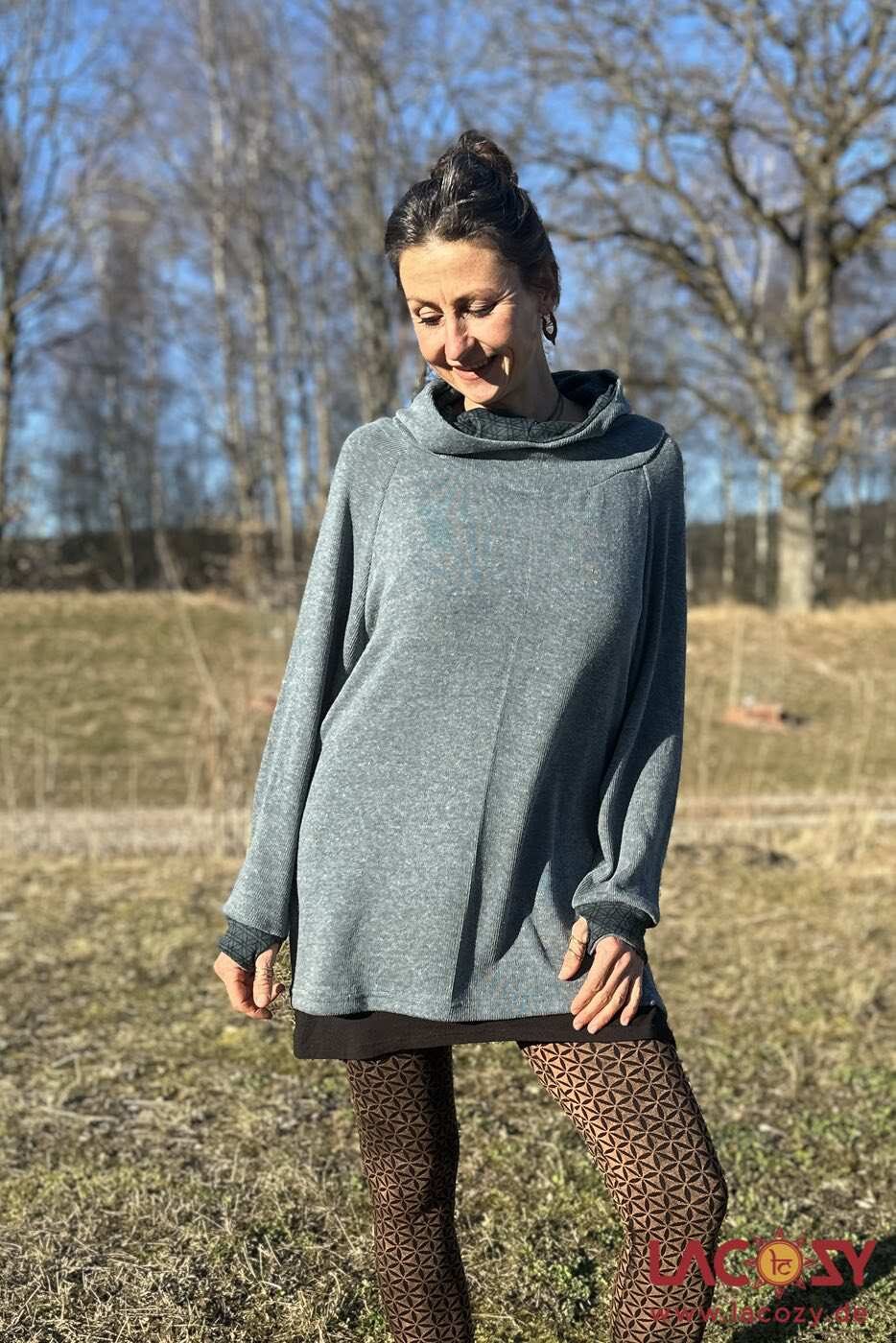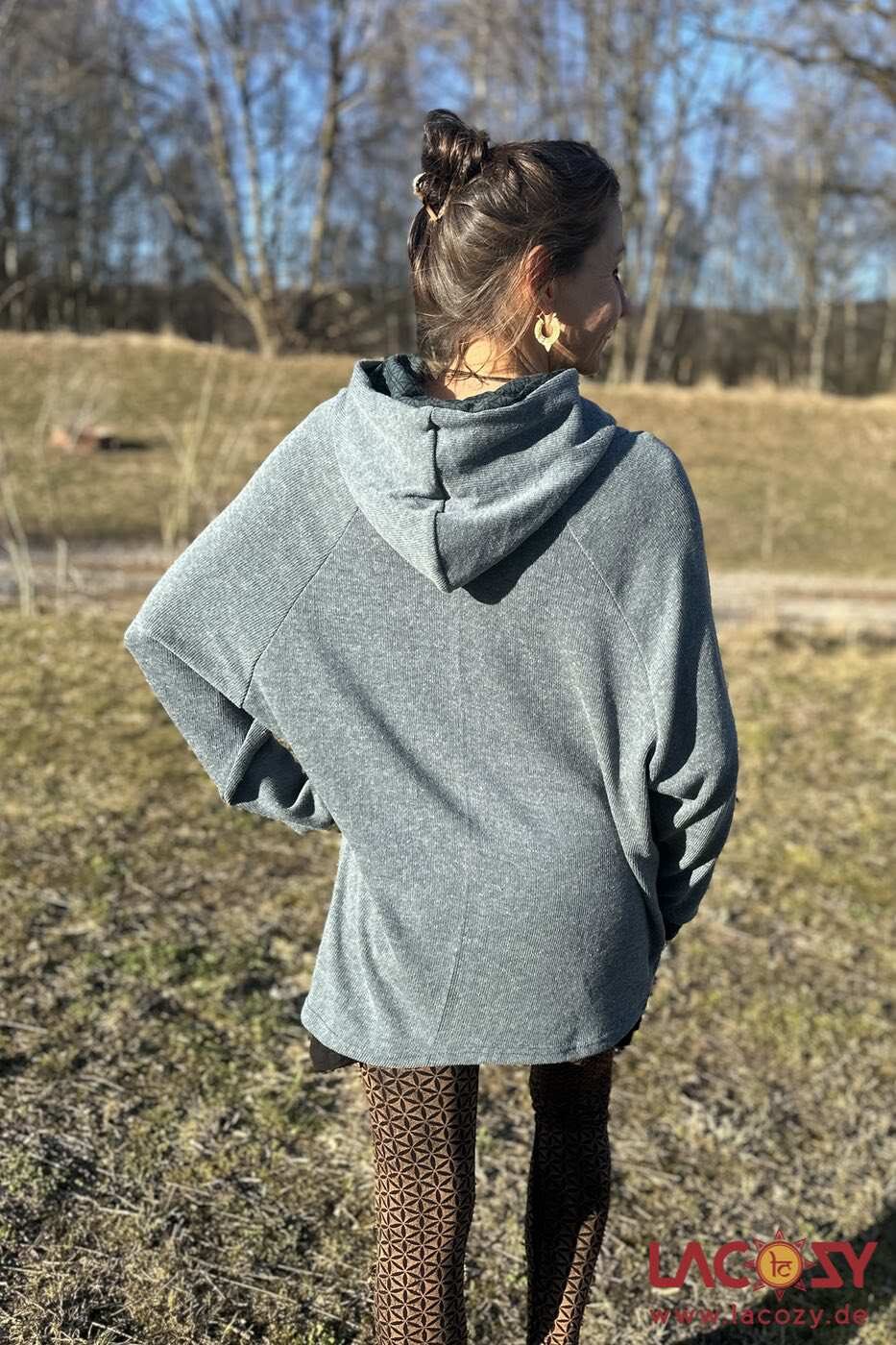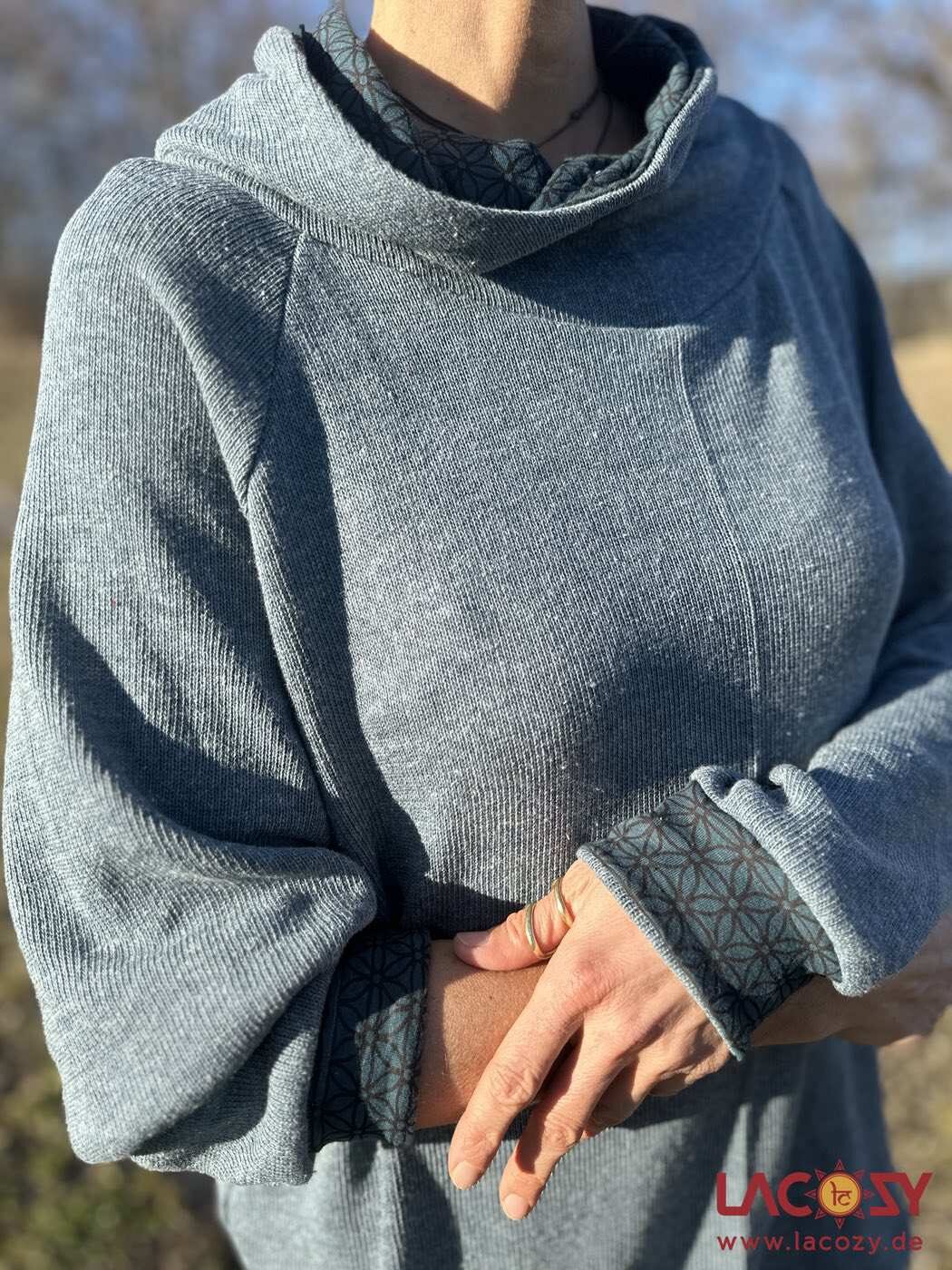 Super bequemer, weit geschnittener Longpullover LUARA aus Baumwolle mit Blume des Lebens Motiv im Kragen und den Ärmel Bündchen.