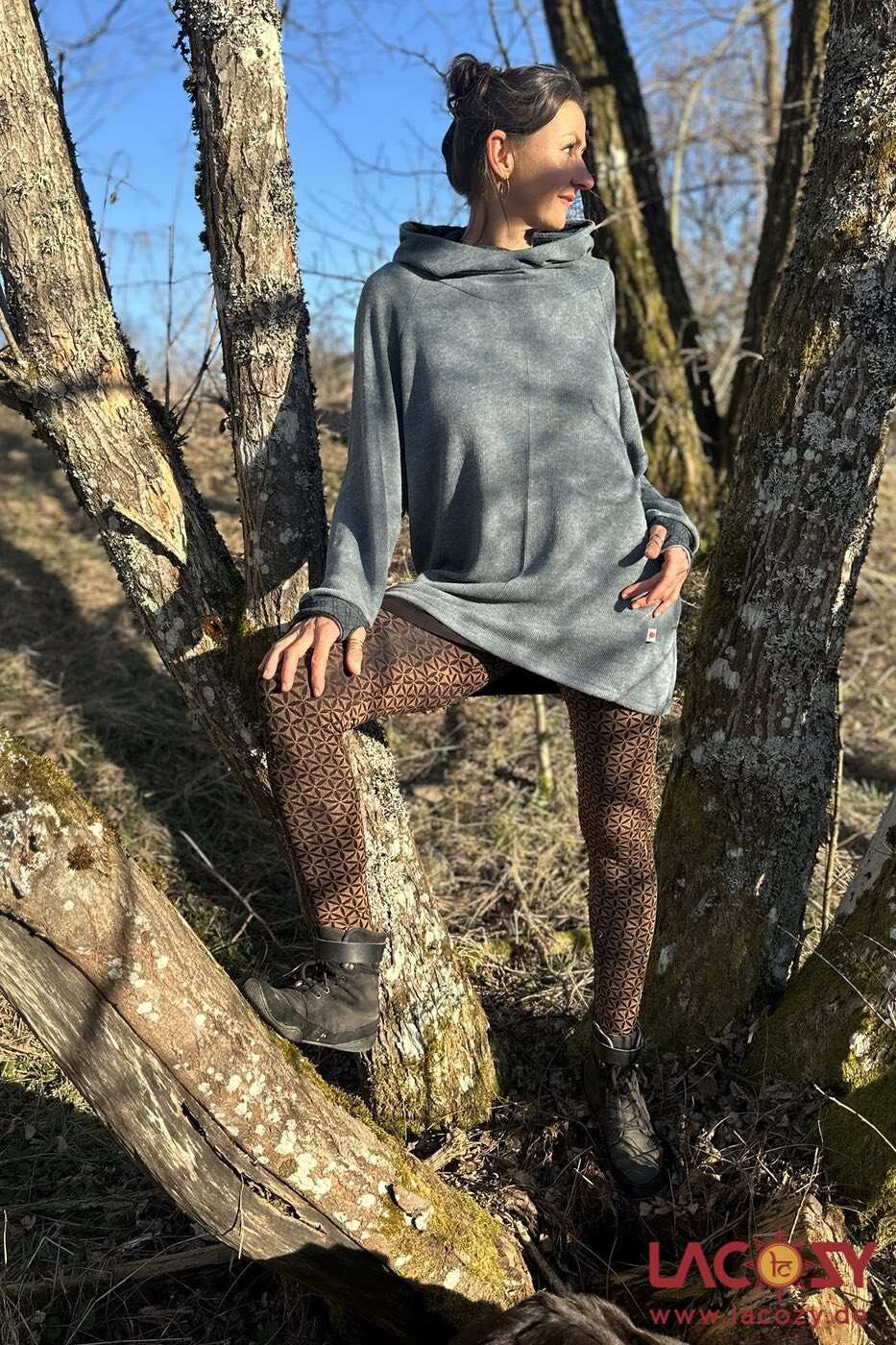* Info: Unser Model trägt hier die braune Leggins mit Lebensblume Muster und das schwarze Longtop JOONI unter dem Pulli