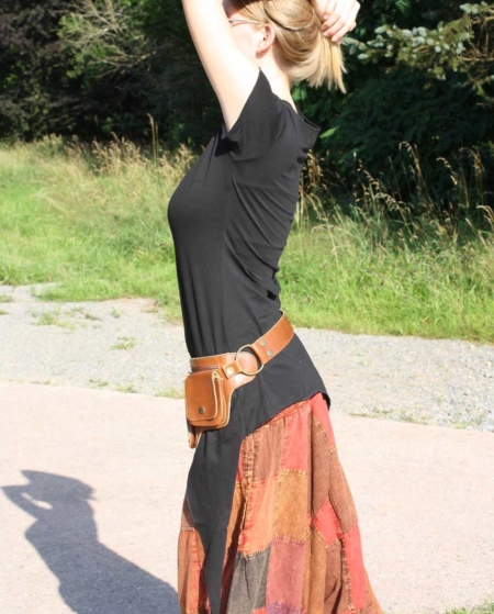 Am rechten Oberschenkel gibt es eine seitliche Eingriffs-Tasche.