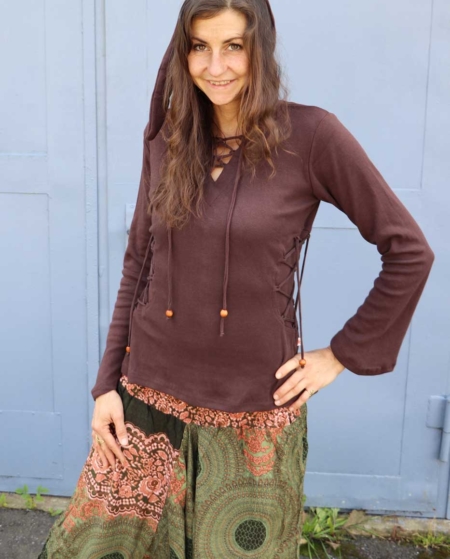Die luftige Haremshose in Khaki wurde aus leichter Viskose gefertigt und trägt sich ideal bei heißen Temperaturen. Aufgrund des weichen Materials passt sie sich geschmeidig fließend dem Körper an, fühlt sich sehr angenehm auf der Haut an und ist im Sommer der bequemste Begleiter, den man sich vorstellen kann.