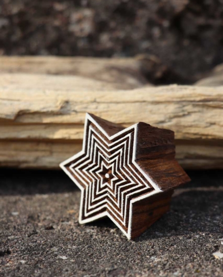 Der handgeschnitzte Stempel HYPNO mit quadratischem Spiralenmotiv kann sowohl mit normaler Stempelfarbe, als auch mit Kleider-, Wand- oder Acrylfarben verwendet werden. Am besten eine eher weiche Oberfläche als Unterlage benutzen, z.B. Teppichboden oder ein Stück Filz, so dass sich der Stempel gut eindrücken kann. Auch für die Anwendung auf Ton gut geeignet.
