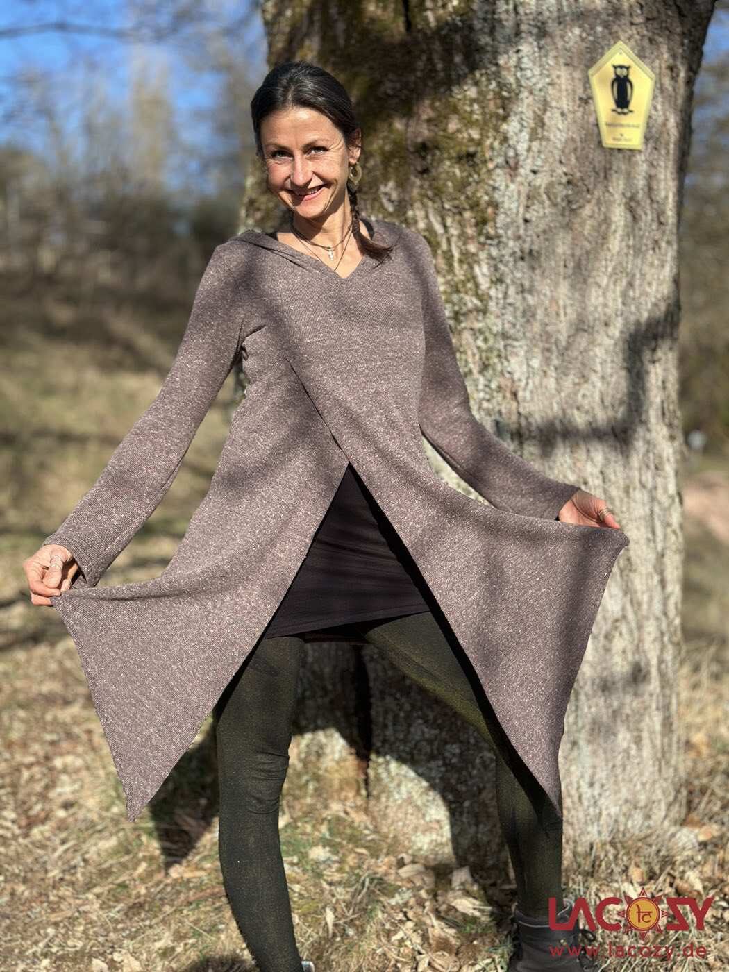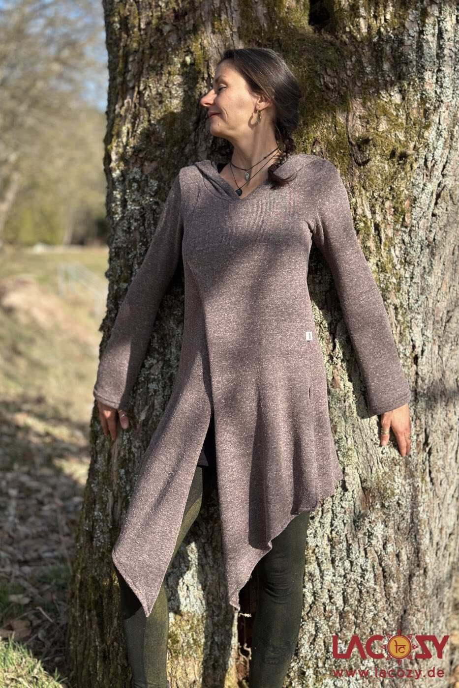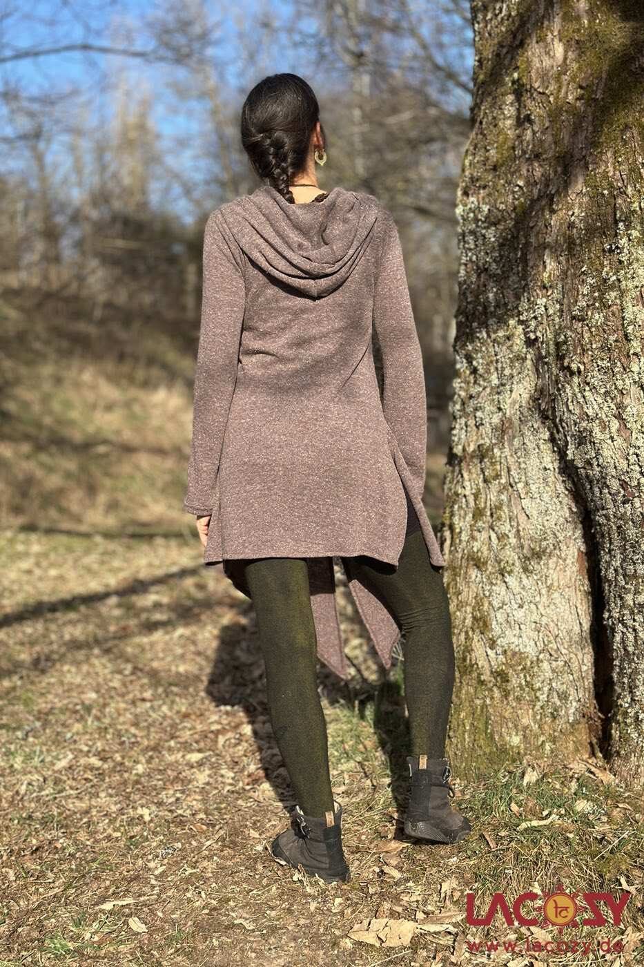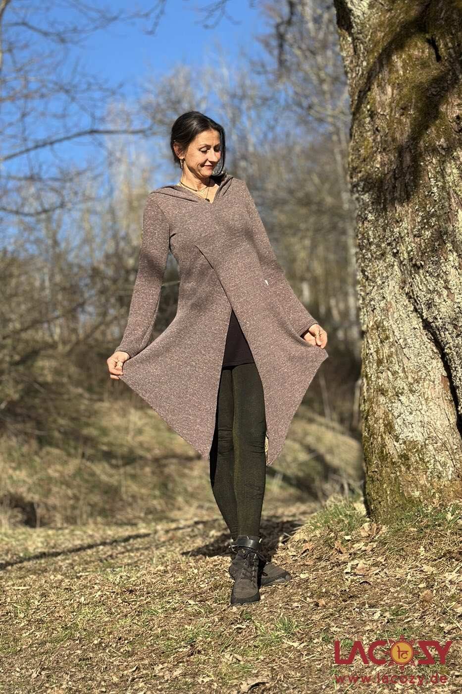 Langer Zipfelpulli FOREST aus weicher Baumwolle mit asymmetrischem Schnitt und weiter Kapuze. Perfekt für Elfen Looks, Festivals und gemütliche Alltagsoutfits.