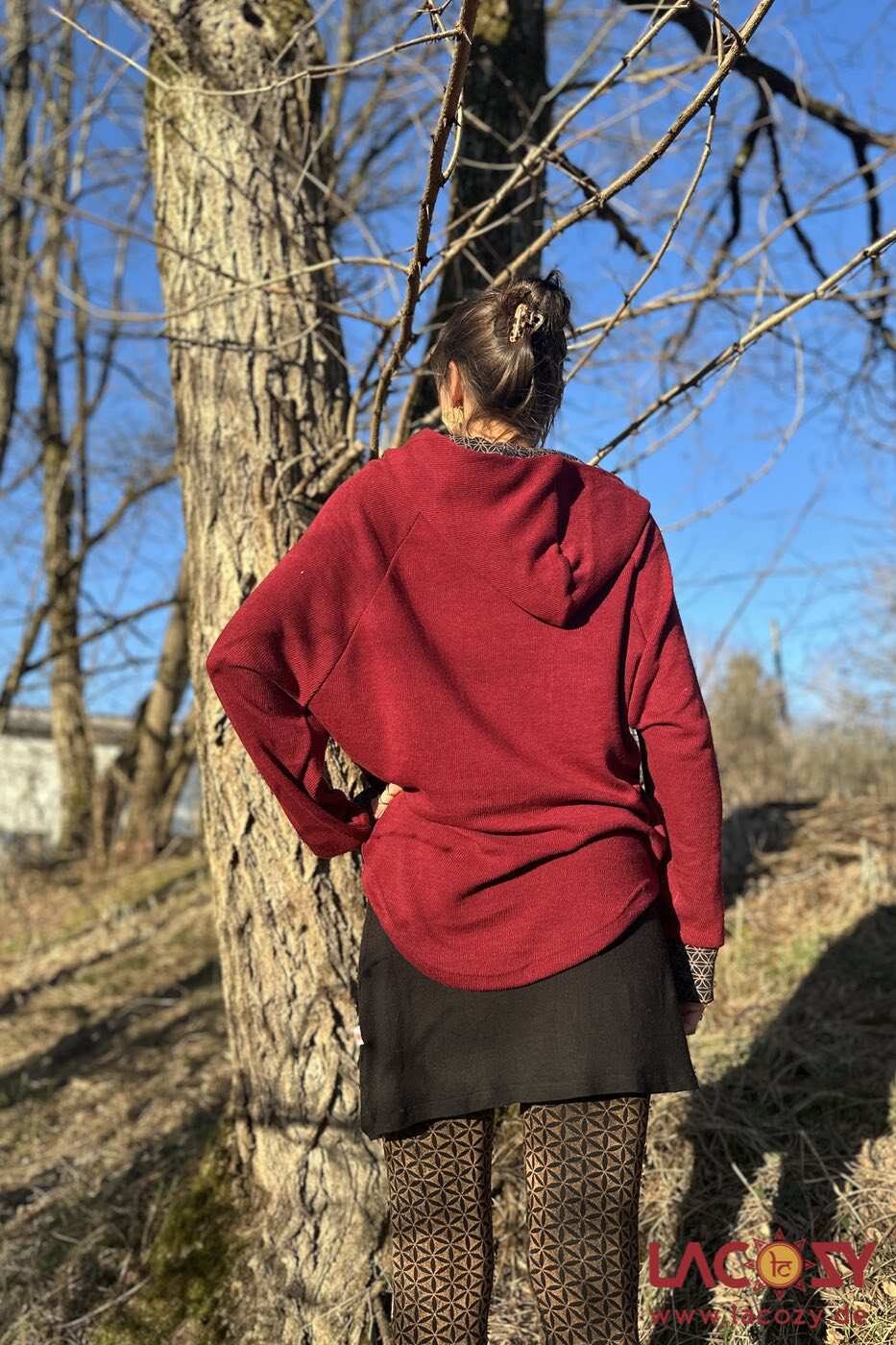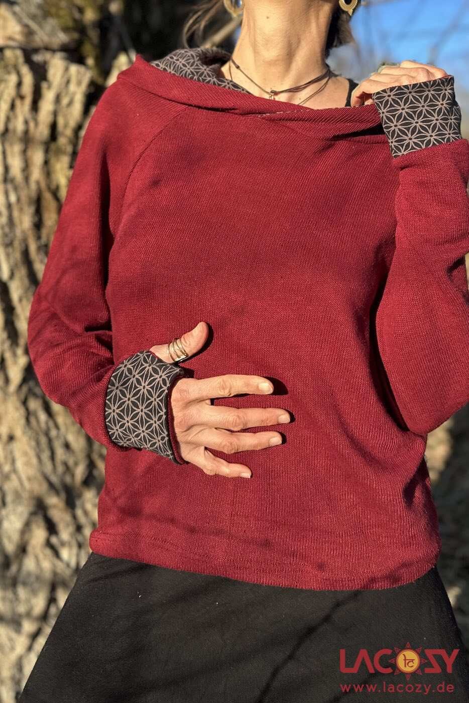 Ein schönes Detail ist das Lebensblume Muster in Kapuze und Ärmeln, welches dem Hoodie eine besondere Ausstrahlung verleiht und ihn zu einem vielseitigen Begleiter für Alltag, Yoga oder Festivals macht.