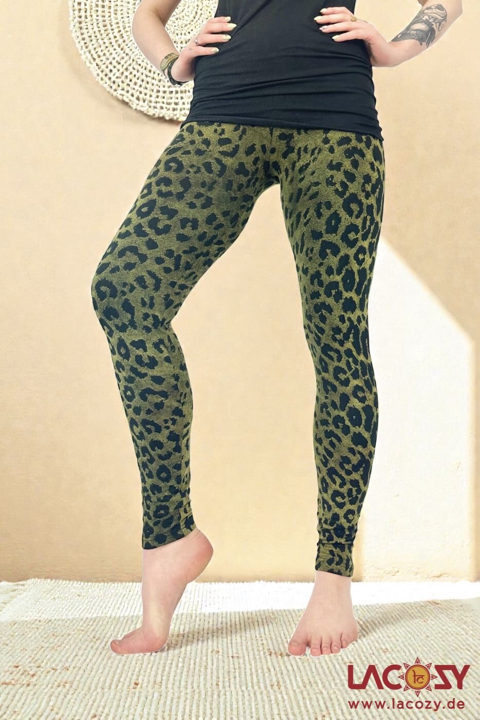 Leo Leggings grün aus weicher Viskose – bequem, elastisch & perfekt für Yoga, Sport und entspannte Alltagslooks.