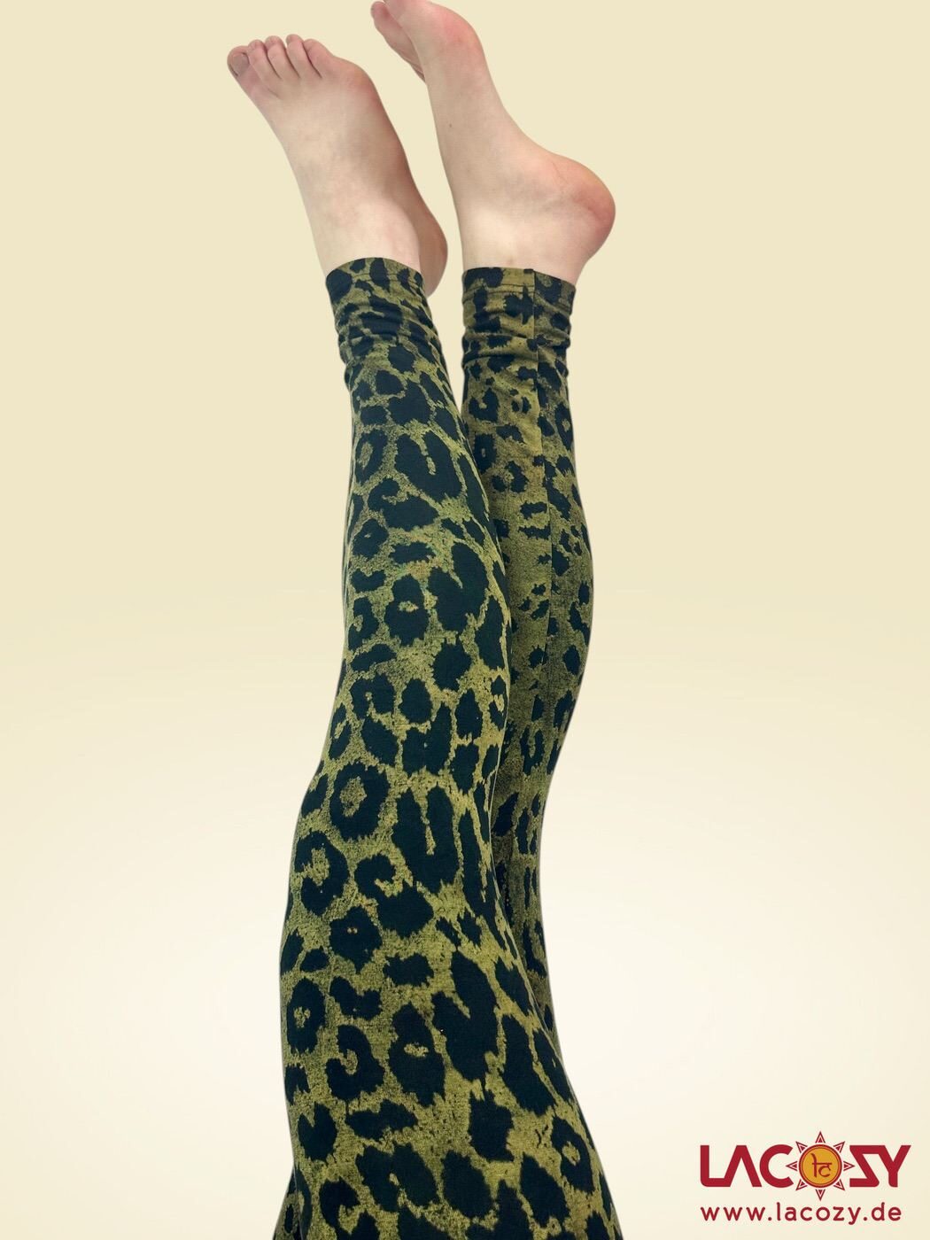 Bequeme und anpassungsfähige Unisex Leggings mit wildem Leo-Muster in frischen Grün-Gelb-Nuancen.
