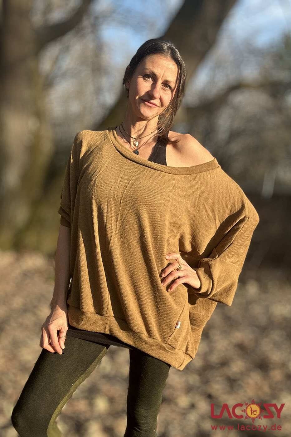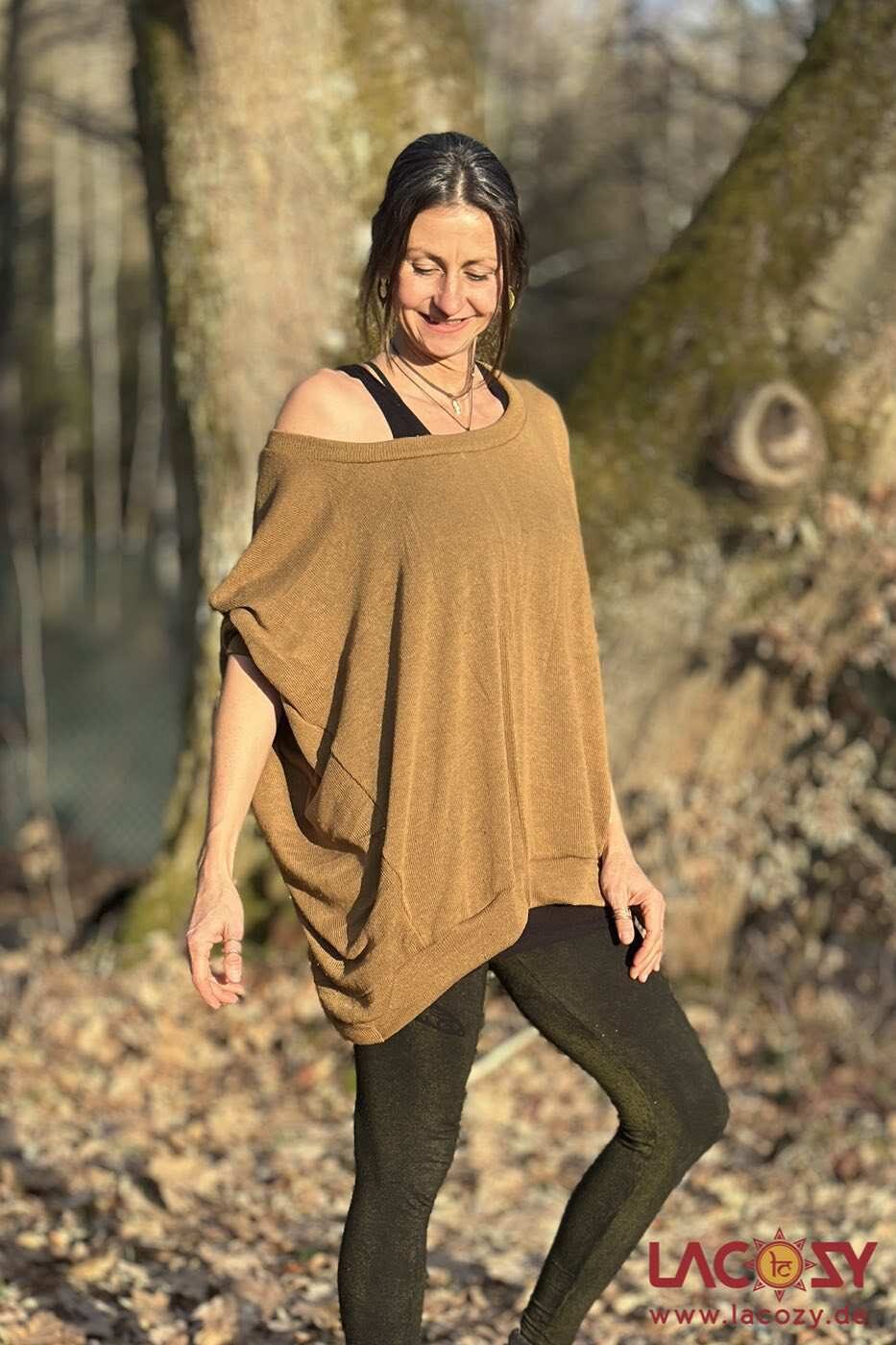 Locker fallender Boho Pulli im Oversize Style aus elastischer Baumwolle. Weit geschnitten, weich & luftig – perfekt für Boho- Lagenlook und Alltag.