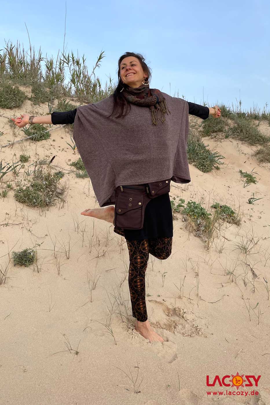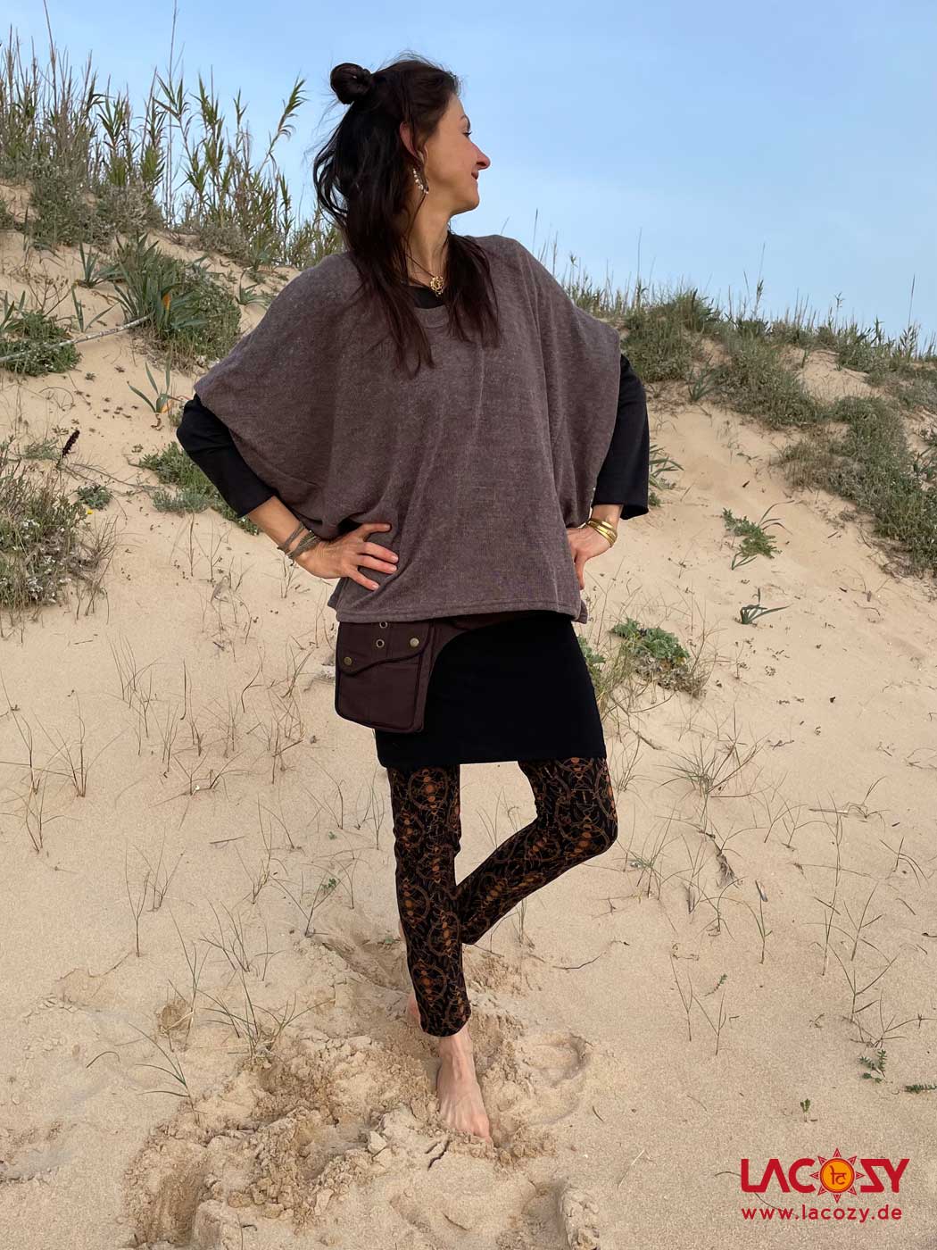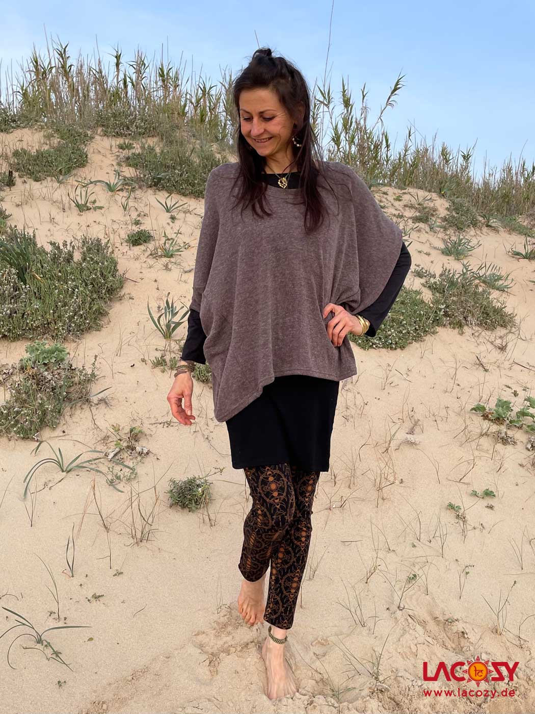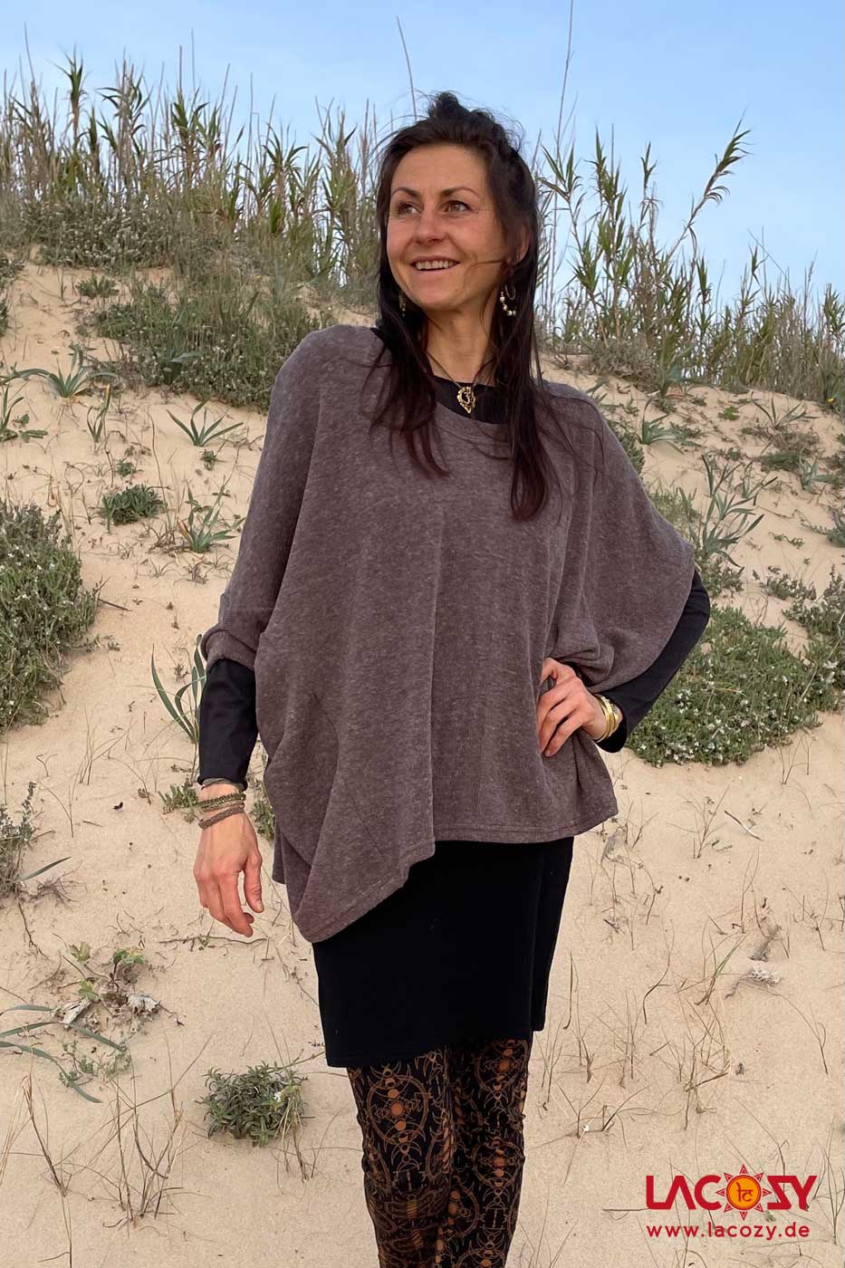 Locker fallender Oversize Pulli aus elastischer Baumwolle in Braun. Weit geschnitten, weich & luftig – perfekt für Boho- Lagenlook und Alltag.