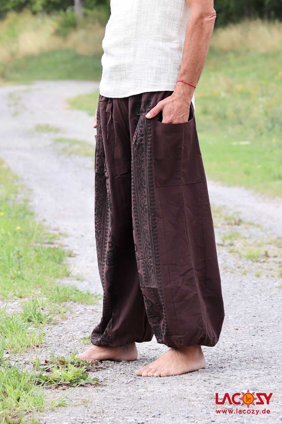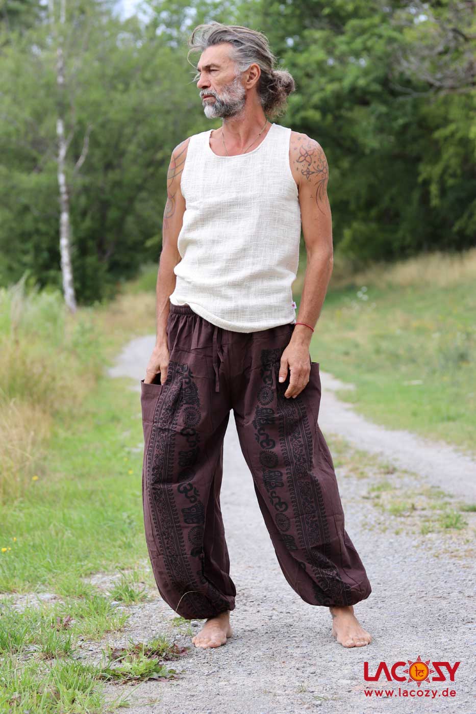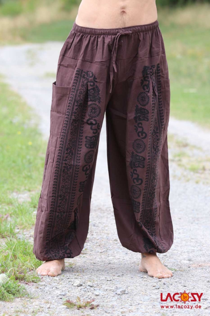 Locker legere Chillhose für Sie und Ihn. Gefertigt aus robuster und dennoch weicher Baumwolle, sitzt sie bequem und trägt sich angenehm auf der Haut. Die Pumphose ist mit 2 praktischen, tiefen Taschen ausgestattet. Ihre absolute Bewegungsfreiheit und der kunstvolle Print mit strahlendem Om und buddhistischen Glückssymbolen machen die gemütliche Freizeithose zu einem extrem gemütlichen Begleiter für viele Gelegenheiten.