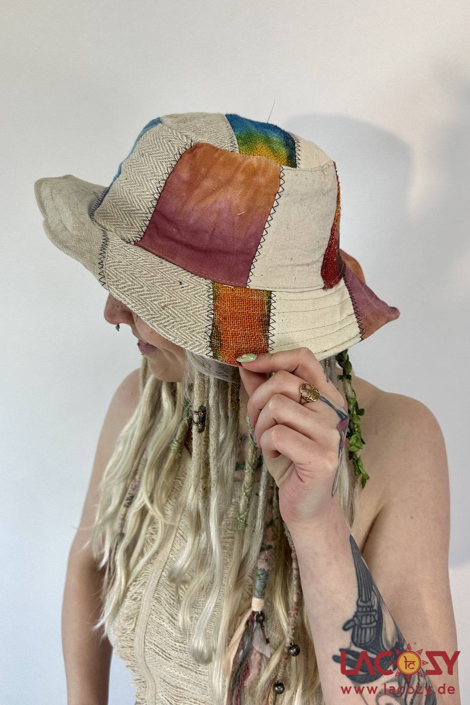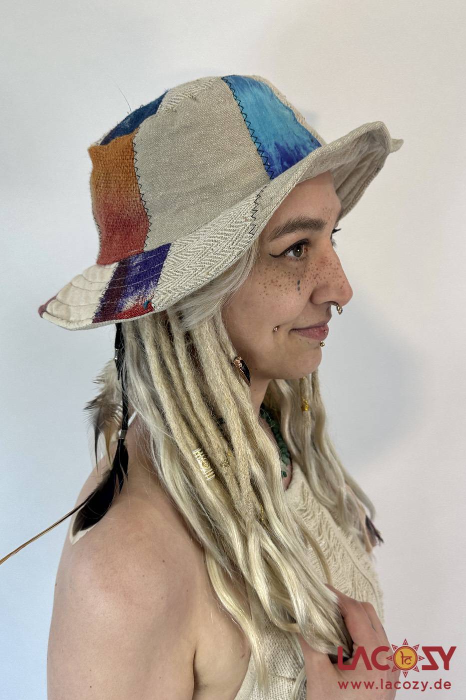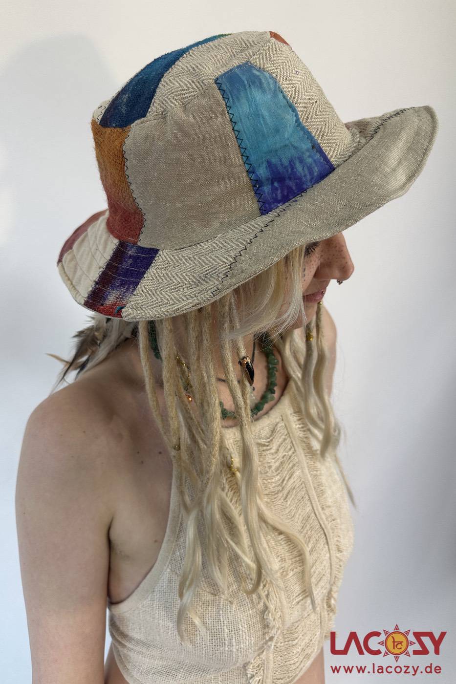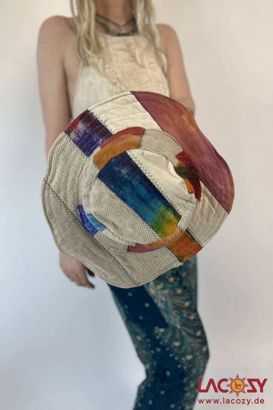 Hanf ist besonders langlebig, atmungsaktiv und hautfreundlich – ideal auch für empfindliche Haut. Durch das mehrfarbige Patchwork-Design ist jeder Hut ein echtes Unikat mit individuellem Charakter.