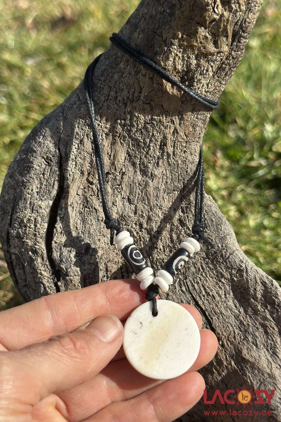 Handgefertigte Triskele Kette aus Yak-Knochen – kraftvoller Ethno Anhänger mit verstellbarer Länge und Kraftsymbol für Schutz, Balance und Lebensenergie.
