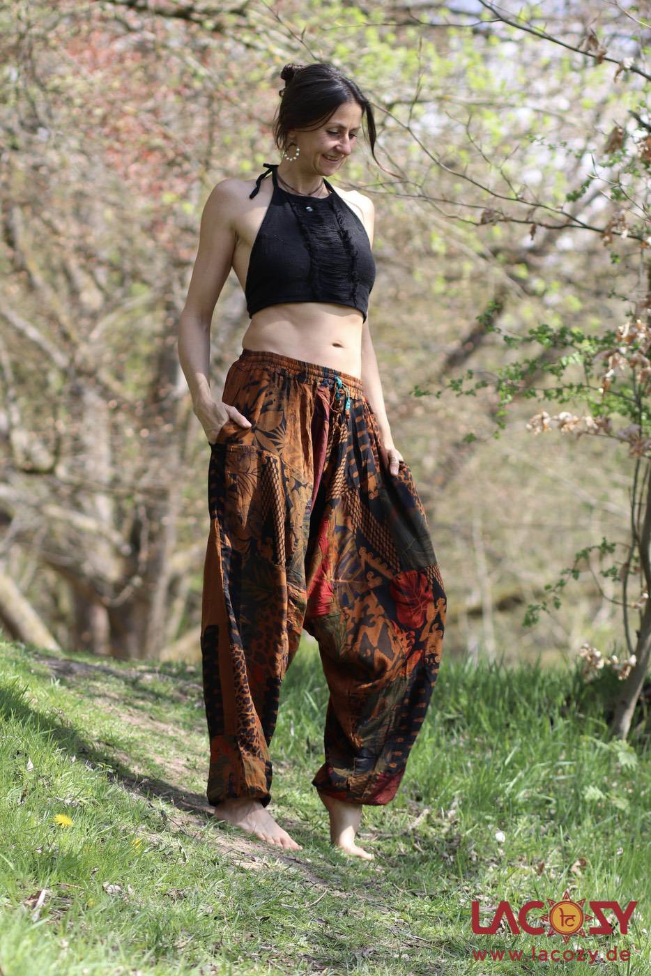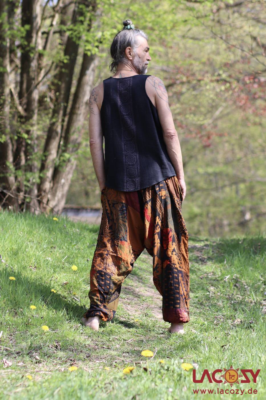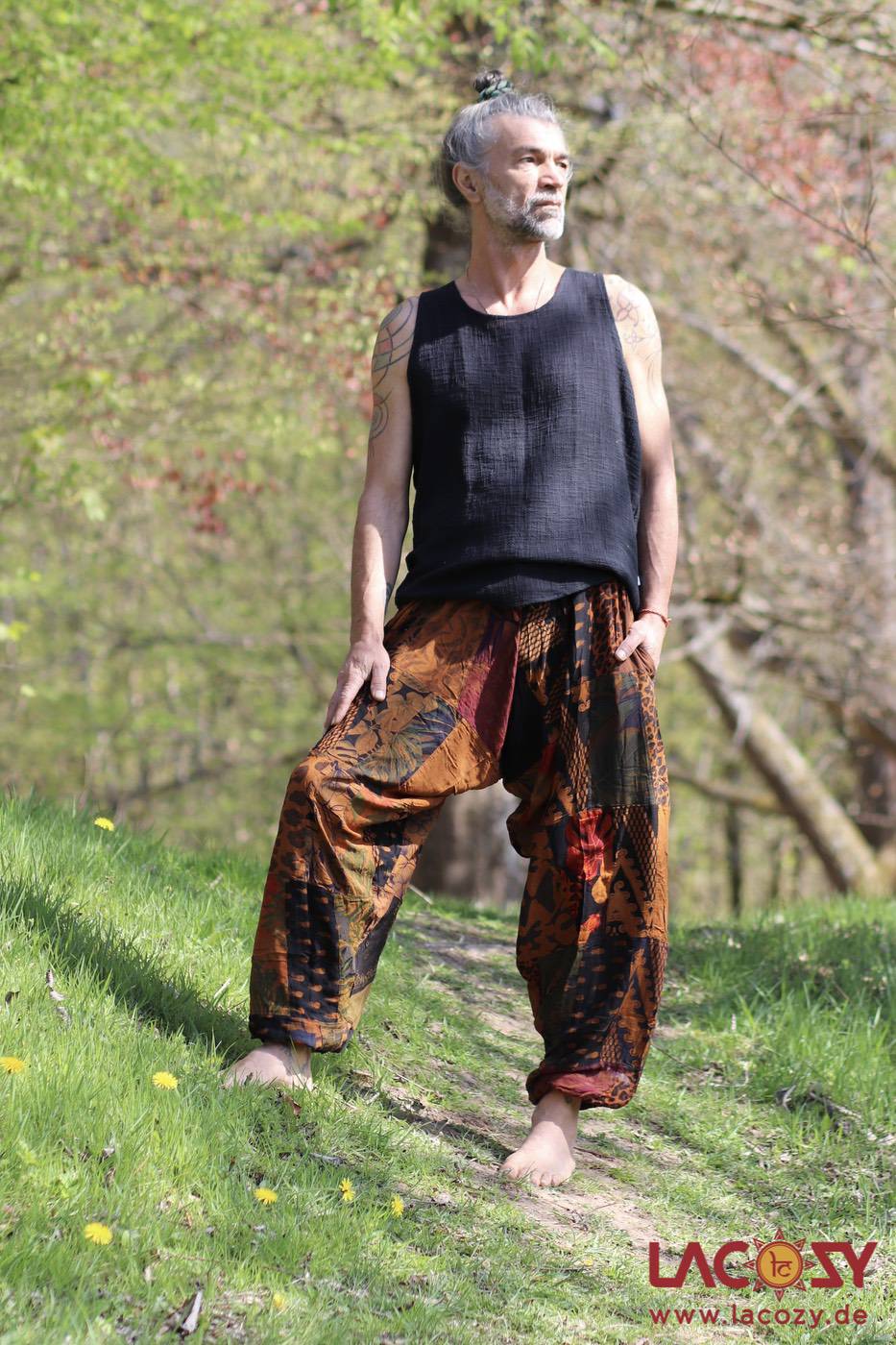 Als Unisex-Modell passt sich die Hose ganz entspannt verschiedenen Körperformen an und ist vielseitig tragbar – ideal für Yoga, Festivals, Reisen oder Alltag.