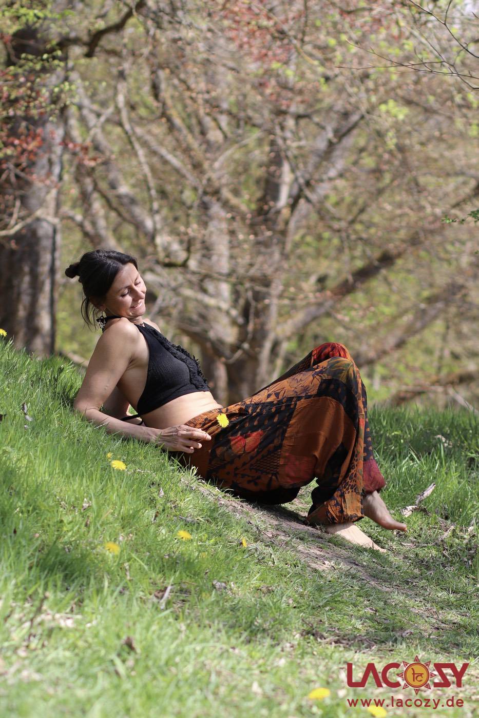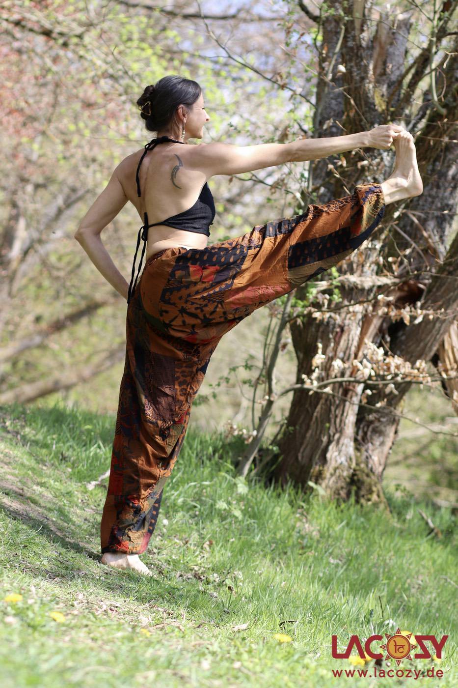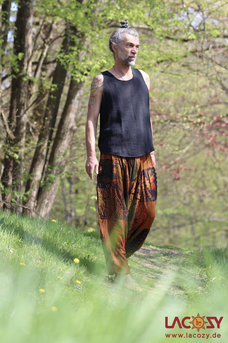 Als Unisex-Modell passt sich die Hose ganz entspannt verschiedenen Körperformen an und ist vielseitig tragbar – ideal für Yoga, Festivals, Reisen oder Alltag.