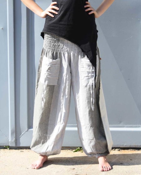 Luftig, weiter Boho Hosenrock aus hochwertiger Musselin Baumwolle im erdigen Cremeton.