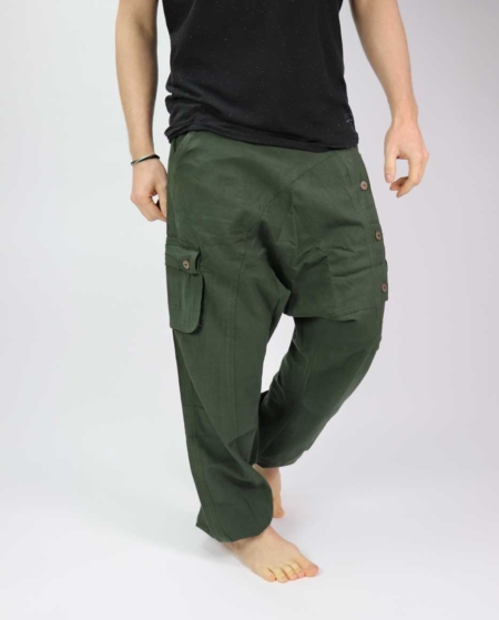 Luftig legere Herrenhose aus robuster, fester Baumwolle. Ausgestattet mit 2 großen praktischen Taschen, absoluter Bewegungsfreiheit und segensreichen buddhistischen Glückssymbolen wird die bequeme Freizeithose zum chilligen Begleiter für jede Gelegenheit.