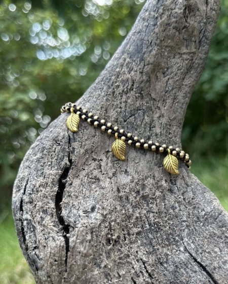 Makramee Fußkettchen GOLDBLATT | Schwarz