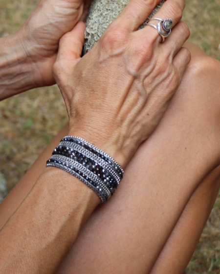 Makrame Ohrringe FEE Schwarz | Metallic | Gold