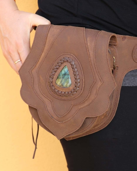 Hüfttasche SHAYA aus Leder mit Labradorit Unisex Braun | Gold