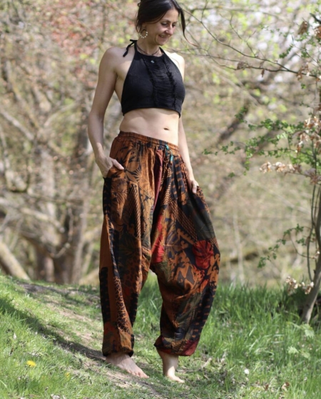 Unisex Patchwork Haremshose SUNDARA FLOW | Braun