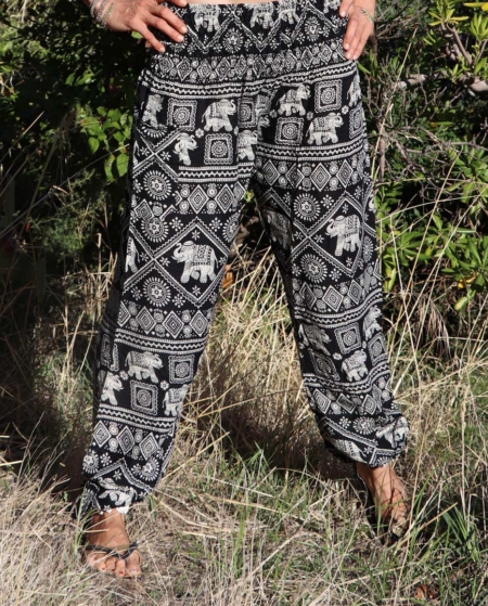 Pumphose mit ELEFANTEN Muster / BLACK | WHITE
