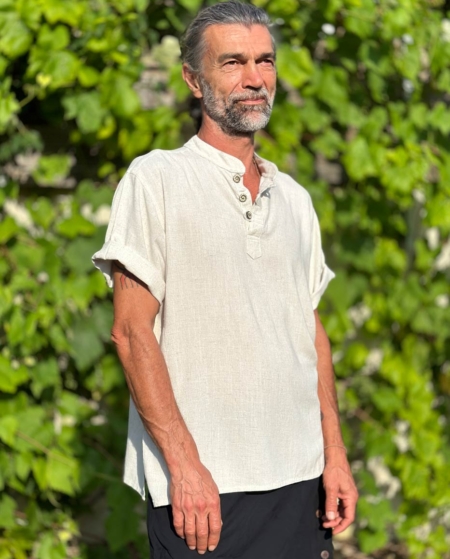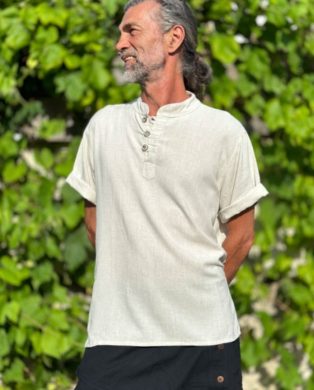 Leinen Herrenhemd ZEN | Langarm Shirt mit V-Ausschnitt | Natur