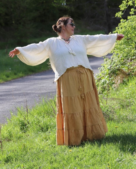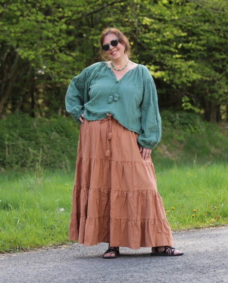 Weiter, langer Musselin Hosenrock SHADI | NATUR