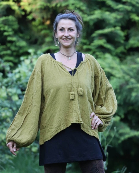 Boho Bluse LEELA aus Musselin | Gelbgrün
