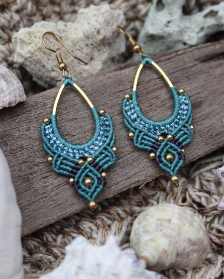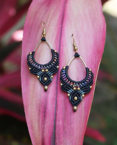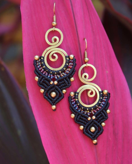 Makrame Ohrringe FEE Schwarz | Metallic | Gold
