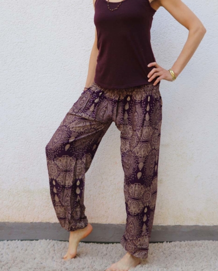 Geschmeidige Pumphose mit PAISLEY Motiv Aubergine | Creme