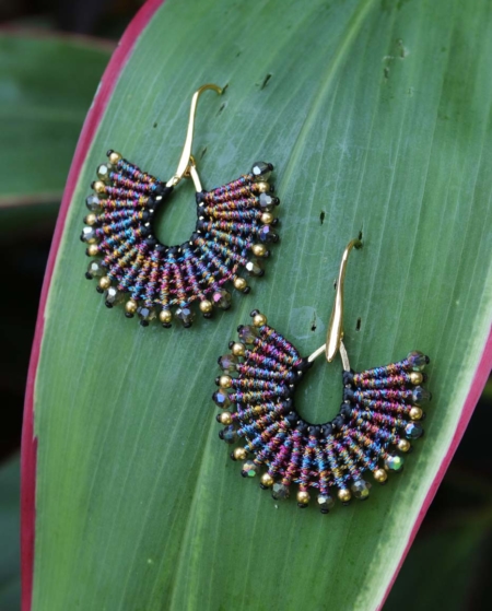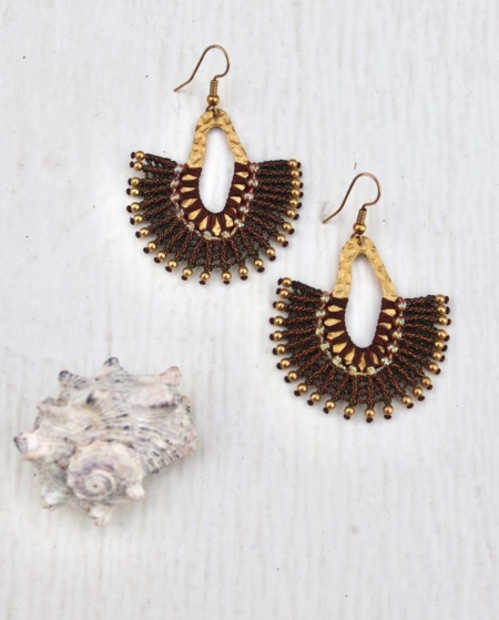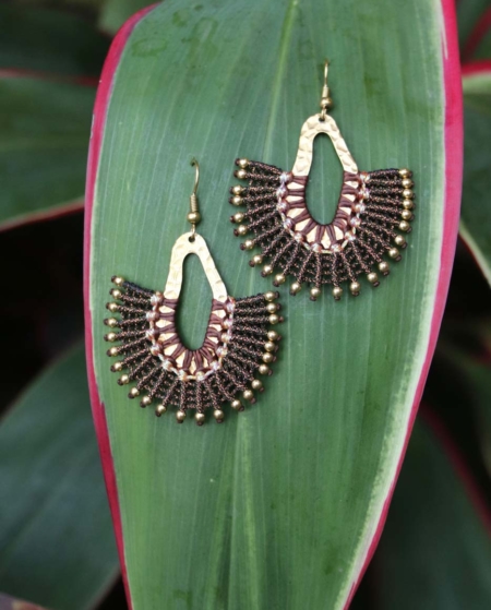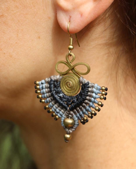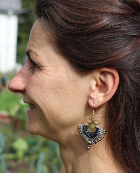 Makrame Ohrringe CHANDI Schwarz | Gold