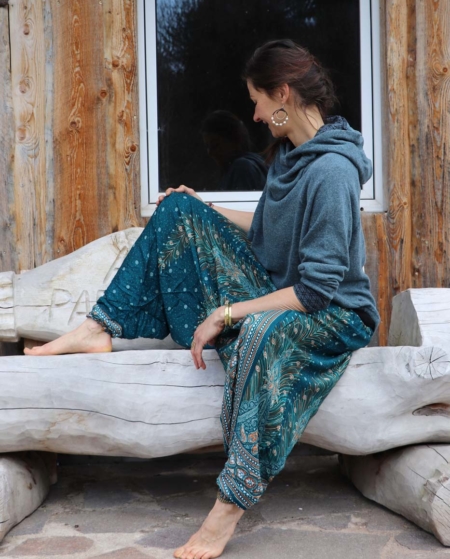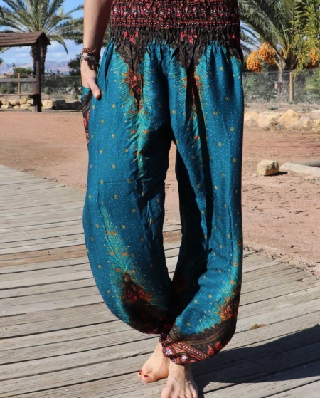 Pumphose mit orientalischer Pfauenfeder | TUERKIS