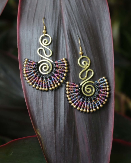 Makrame Ohrringe FEE Schwarz | Metallic | Gold