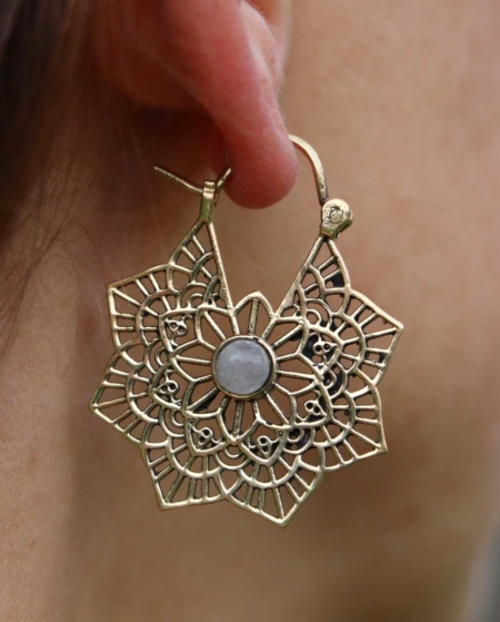 Kreolen mit Mandalamuster und Mondstein | Gold