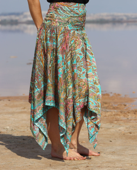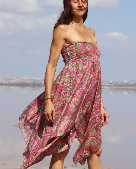 Zipfelkleid und Rock ELYA / Tuerkis Rosa mit Goldelementen